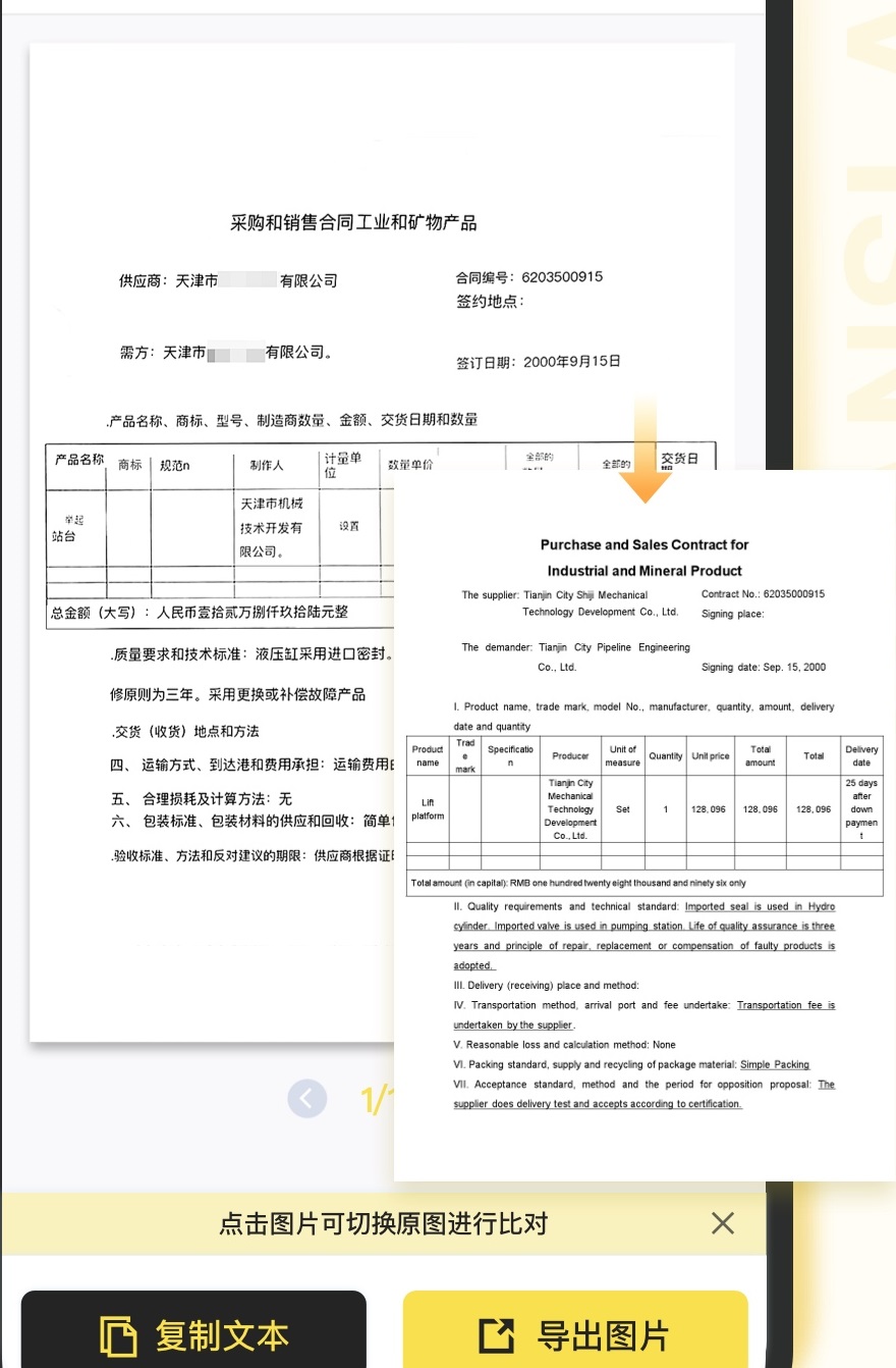 智能OCR文字识别,能够准确识别图片内容,轻松提取文字,并且可对识别的内容进行复制、编辑。