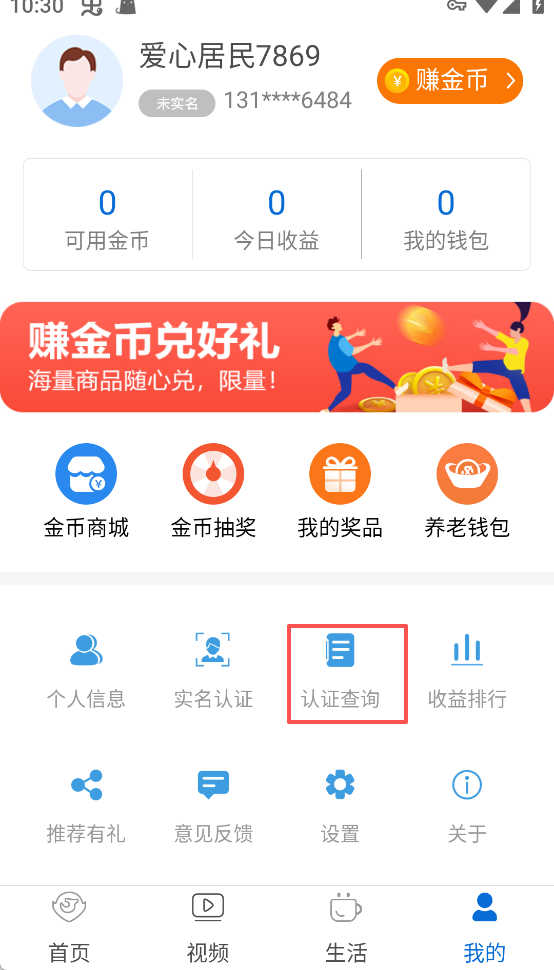 2、也可点击底部“我的”,在个人中心页面中选择“认证查询”。