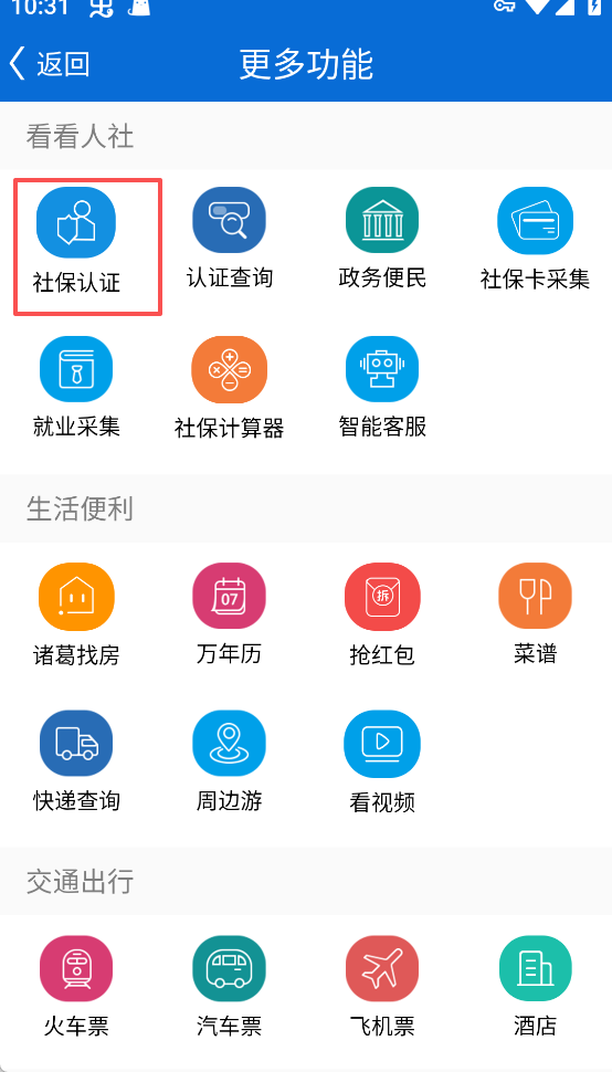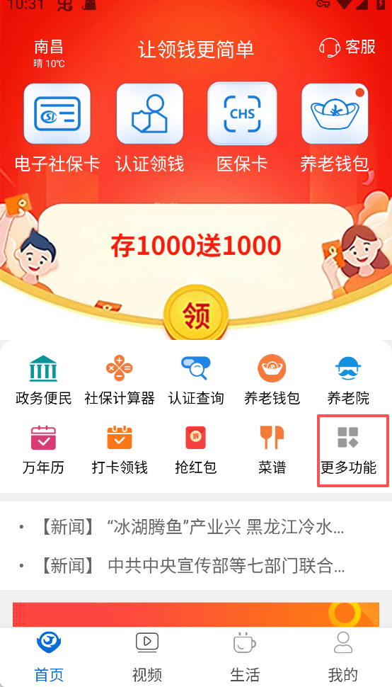 1、打开看看看看社保App,进入首页后点击“更多功能”。