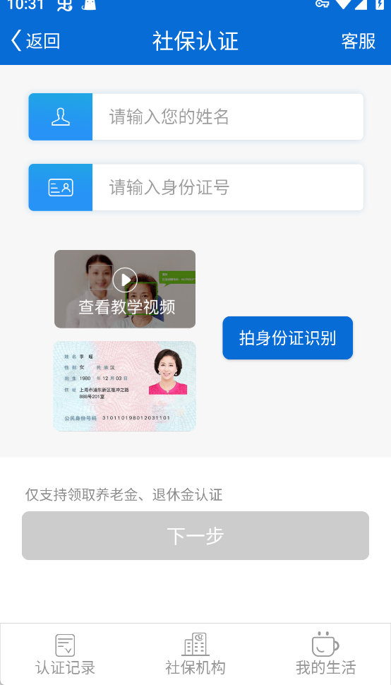 4、按照页面提示完成人脸识别等认证流程,点击“下一步”,即可完成老年人社保认证操作。