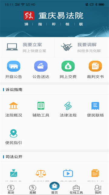 v2.9重庆易法院app是一款便捷的移动端司法服务平台软件,旨在为市民提供高效智能的线上法院业务处理服务。软件内不仅支持网上立案、纠纷调解,还提供案件查询、司法确认、证据交换等服务。通过重庆易法院,用户能够轻松查询案件信息,随时了解案件处理进度和裁定文件下载状况。