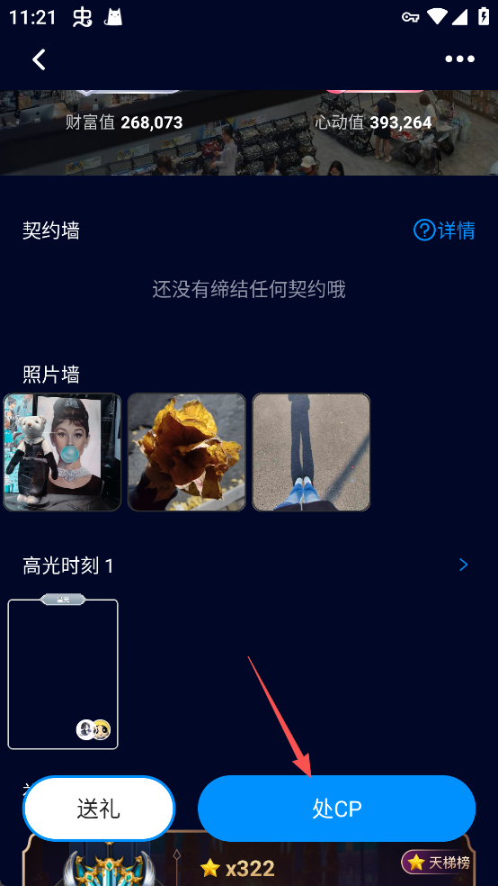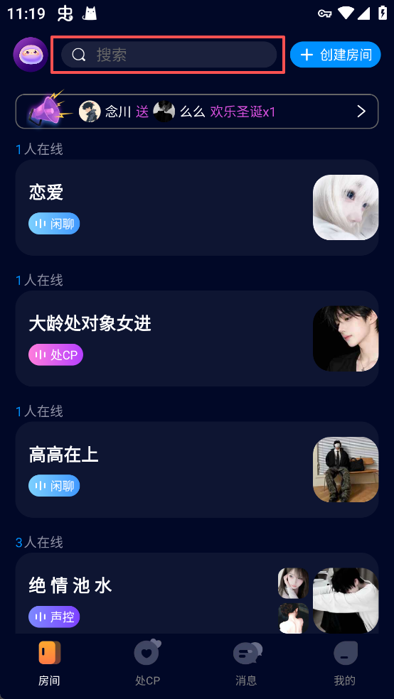 2、进入房间后,点击目标用户头像进入其个人主页,可通过“处CP”功能发起互动,建立初步联系。