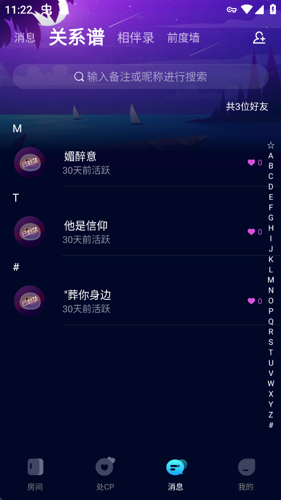 3、互动请求被对方同意后,双方将自动关联为好友关系,可前往“消息”页面中的“关系谱”查看已添加的好友列表。