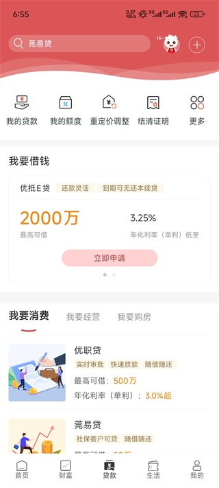 提供各类贷款申请入口,支持额度查询与灵活还款