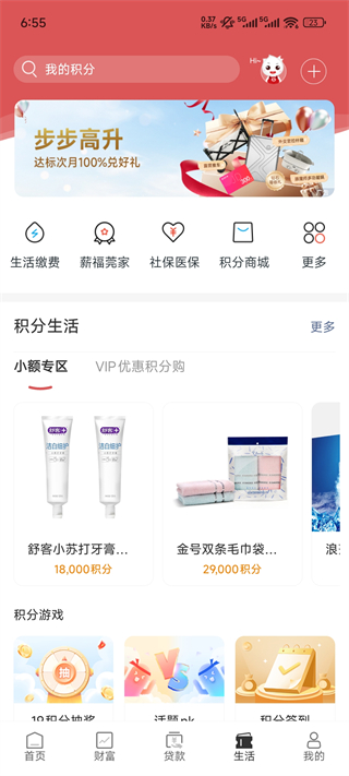 整合生活缴费、积分兑换、福利活动等便民服务与优惠