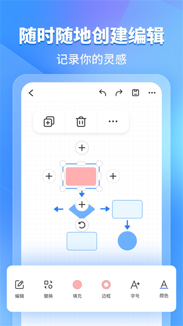 一、支持创建编辑流程图——再复杂的流程图,在手机就能轻松绘制。