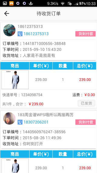 3、点击待收货订单,即可查看详细的订单信息了。