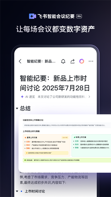 - 高效开会用“飞阅会”:飞书探索出了基于飞书文档的高效开会模式“飞阅会”,会前高效预约会议时间、会中默读共享文档并实时评论协同、会后音视频内容智能转写为会议笔记,让会议效率起飞。