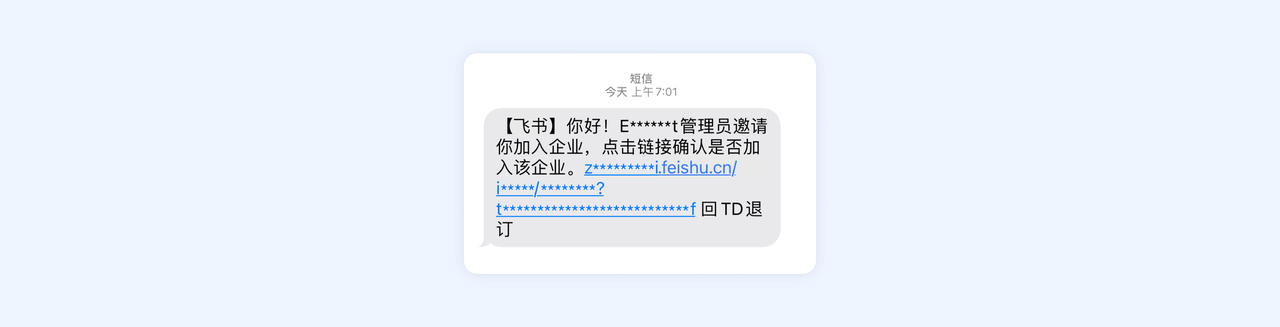 如果你收到了如下短信,说明管理员正在邀请你加入企业。