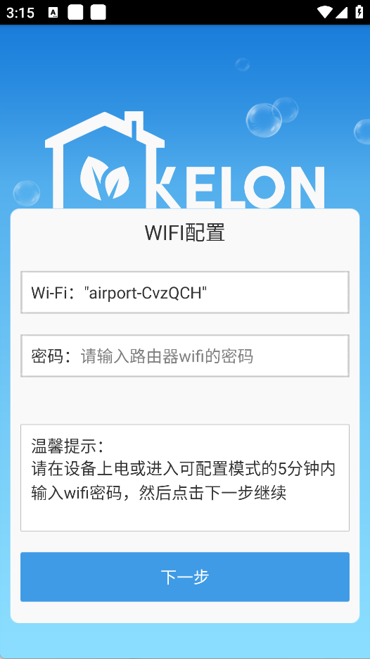 点击“添加设备”,输入家庭WiFi密码,完成初步配对。