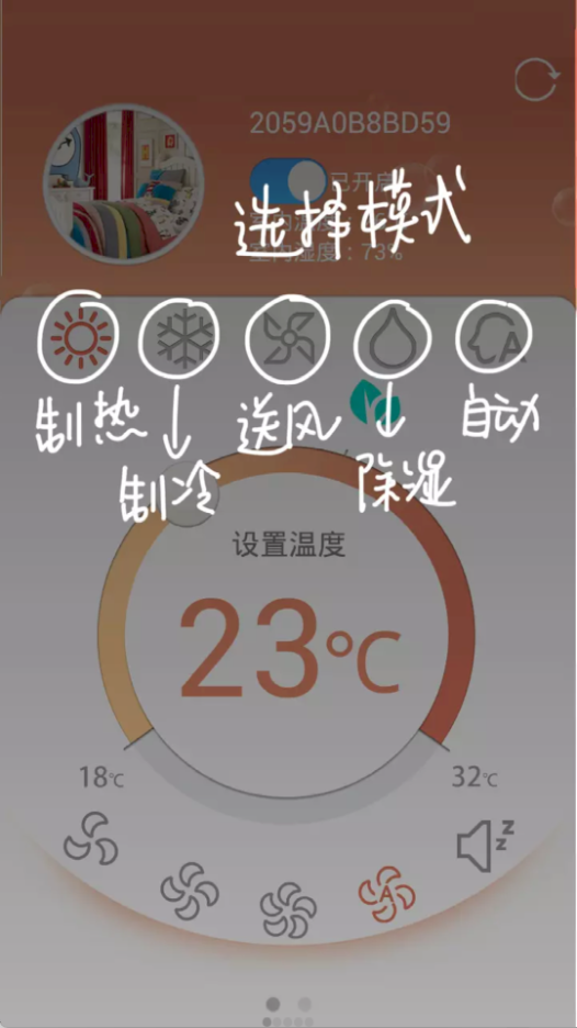 模式切换后,可通过中间的温度环调整目标温度。