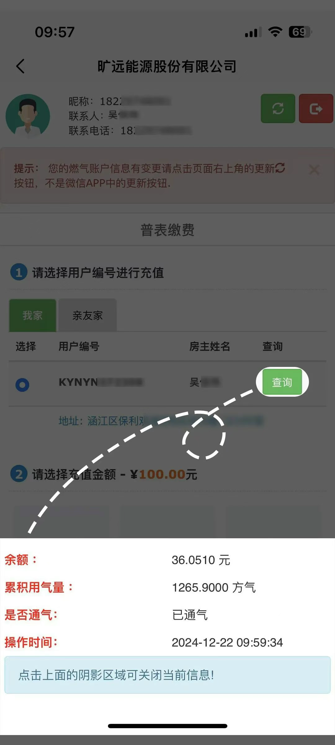 4、燃气充值缴费成功后,需要进行【表上告】,燃气费才能真正到账。