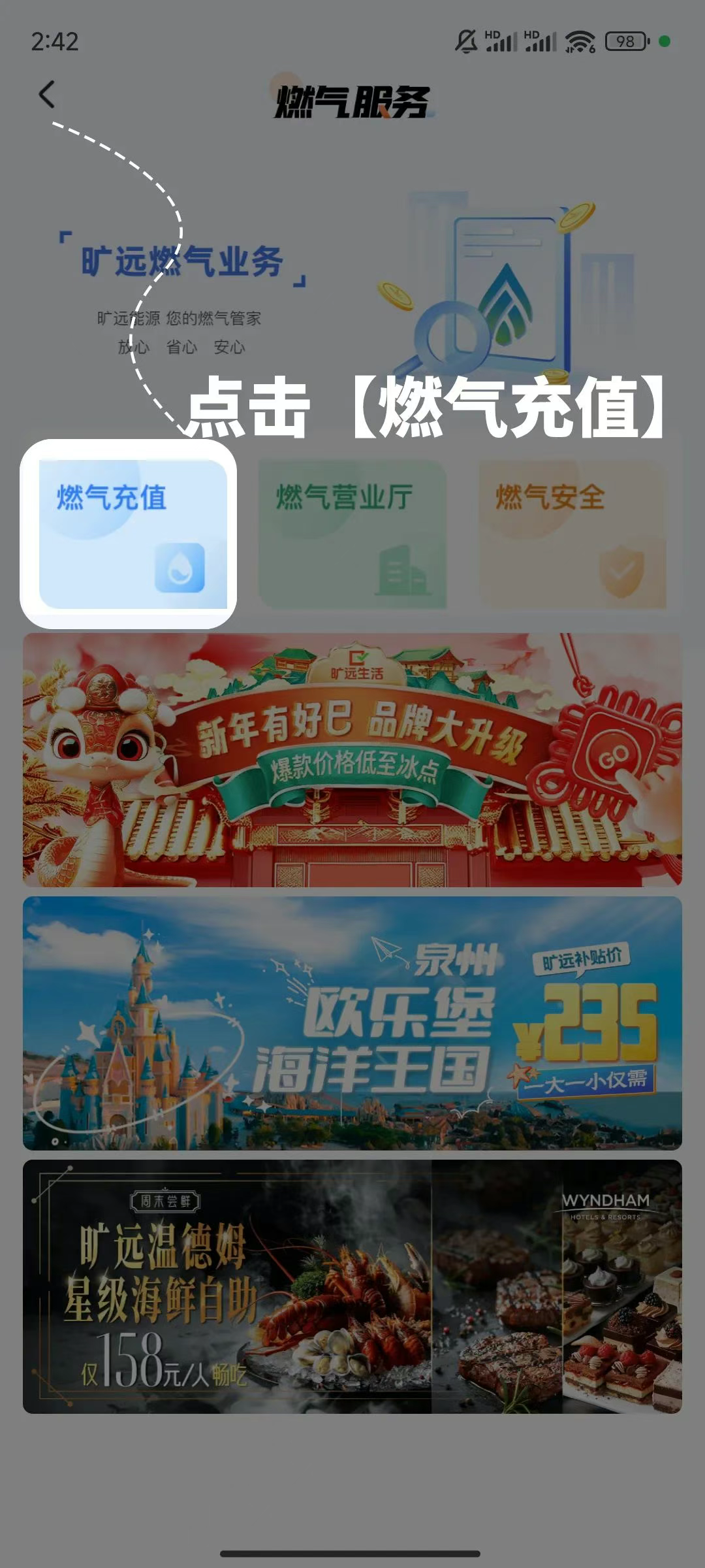 涵盖燃气充值、美食团购、亲子出行、生活超市等。