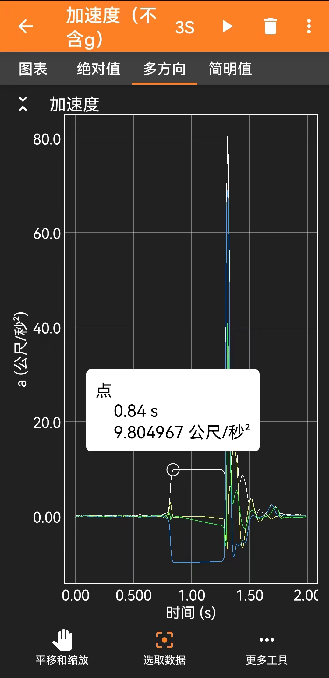 3、倒计时读秒,当手机屏幕上出现测量数据时,突然弹开拇指和食指,释放手机,手机就会自由落下,软件就会自动完成数据采样和图标绘制。