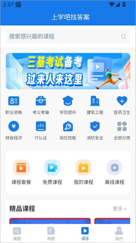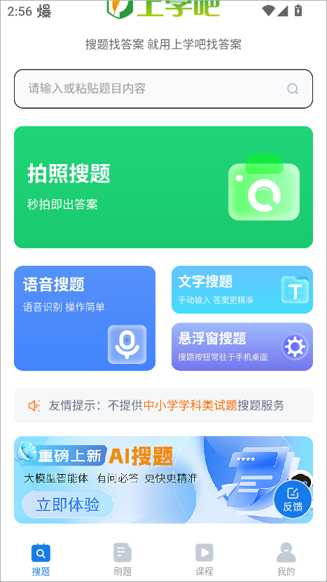 v5.6.2上学吧找答案是一款智能学习备考软件,覆盖大学考试、网课作业、公务员、考研、教师资格、会计职称、医学执业等多个领域。用户可通过文字或语音输入快速搜题,AI智能匹配题目与答案,速度快、准确率高。平台拥有两千多万道题库资源,提供模拟考试、每日一练、错题重做、智能组卷等功能,帮助用户高效备考。上学吧找答案App还内置精选课程专区,由专业讲师授课,内容涵盖从入门到进阶的系统知识,支持免费试看。
