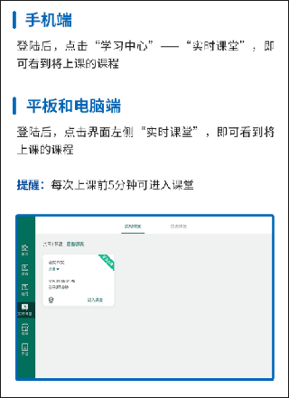 准备可上网的手机/平板/电脑一台,为了保证上课质量,请提前确保网络稳定(上行不低于8M)、环境安静、一定准备好耳机或麦克风哦!