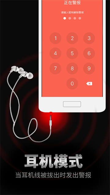 耳机模式:当耳机线被拔出或剪短时发出警报