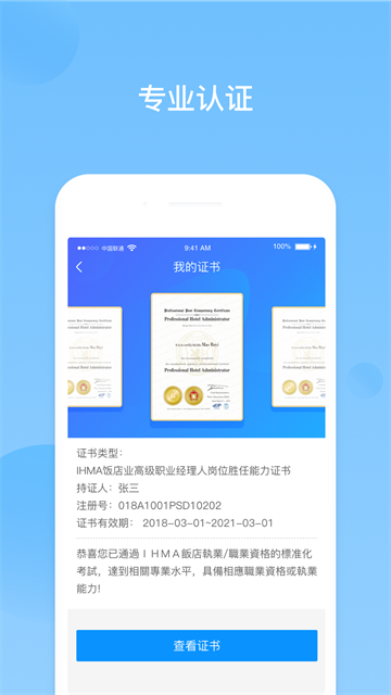 有专业导师、课程研发、服务团队,为每一个学员提供先进的行业知识并获得权威IHMA认证。