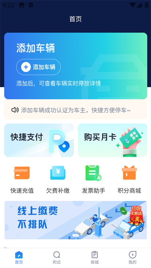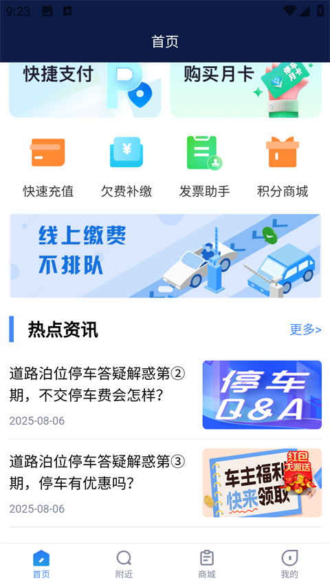 1、快速泊车 停好车即可在线支付。