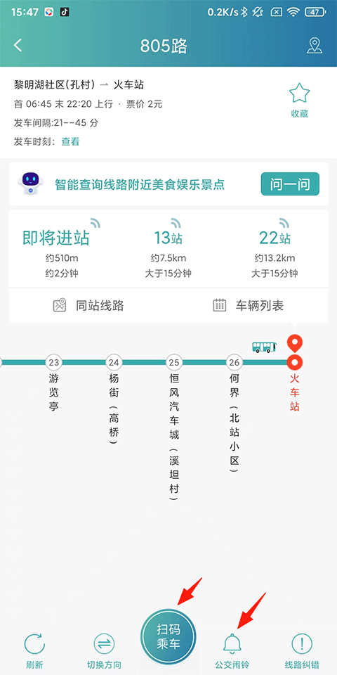 5、最后公交车到站后返回上一页点击下方扫码乘车即可。