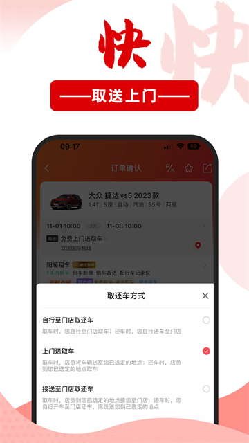 全流程移动互联网体验,APP一键下单,无需额外流程,支持上门送取车。