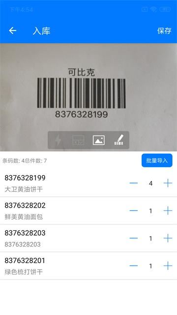 3、条码库管理功能可以让您管理所有产品的条码信息,产品信息和价格,并可快速查询库存数量。