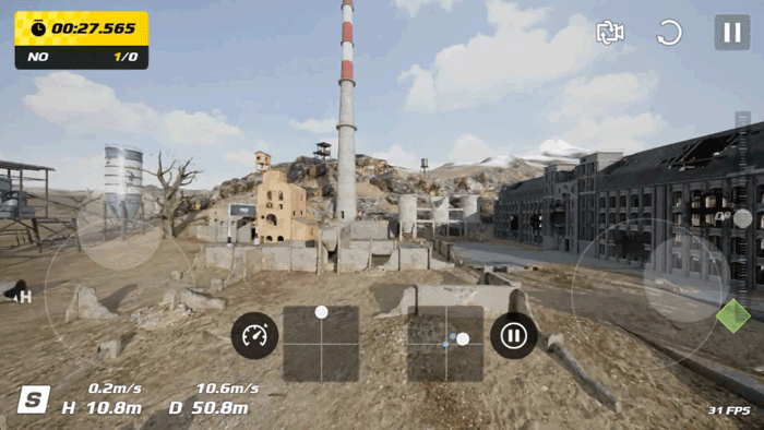 5、选择“工厂”等场景,可进入计时赛、娱乐模式、自由飞行,新手推荐先从计时赛练手。