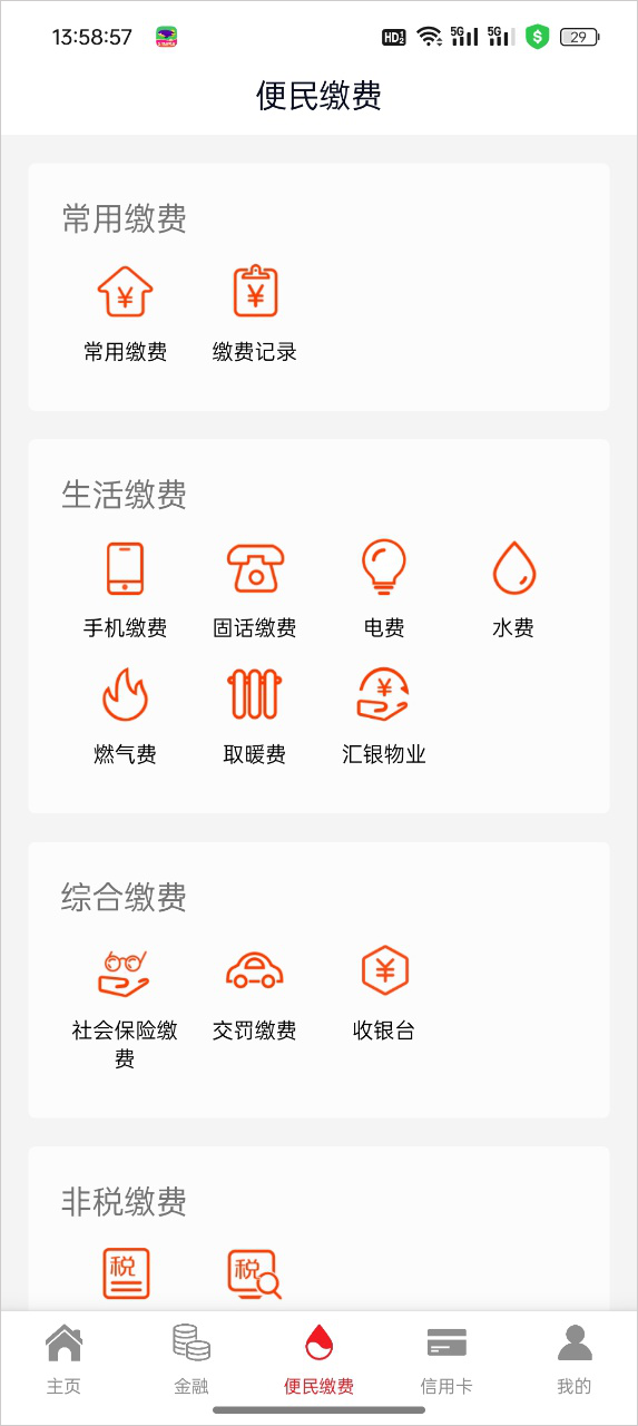 3、在便民缴费模块,你可以在这里进行线上办理缴费;