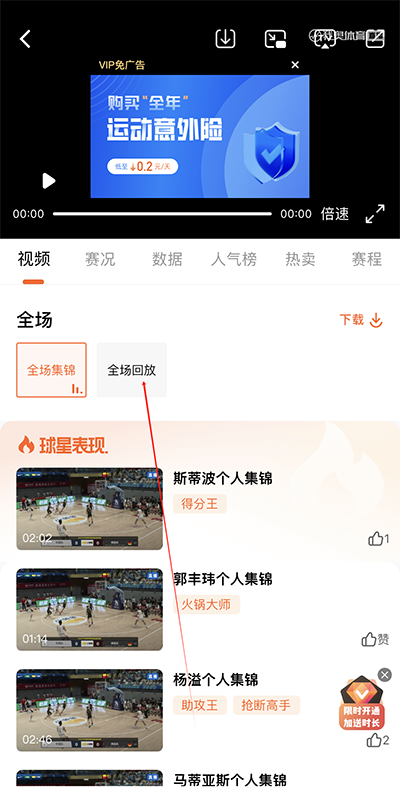 5、点击全场回放即可观看。