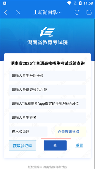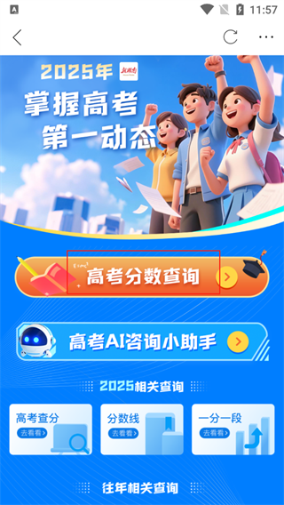 5、点击【高考分数查询】