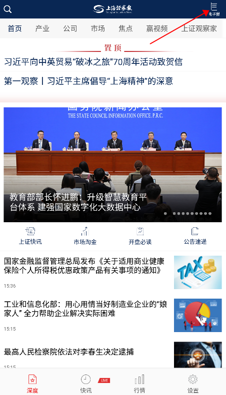2、在深度版块,用户可以了解国内各个行业的头条新闻,了解市场信息。