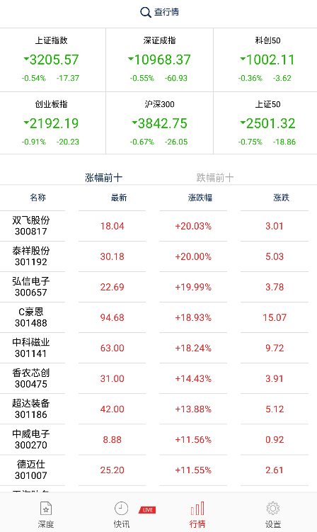 1、打开下载好的app,可以看到软件有深度、快讯、行情、设置四大版块。