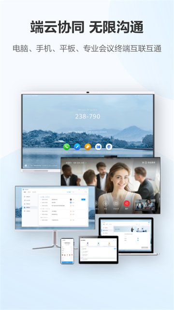 电脑、手机、平板、大屏、专业会议终端互联互通。