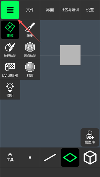 点击左上角的三条横线图标,可以在建模、雕刻、纹理绘制等模式之间切换,选择最适合的工具进行创作。