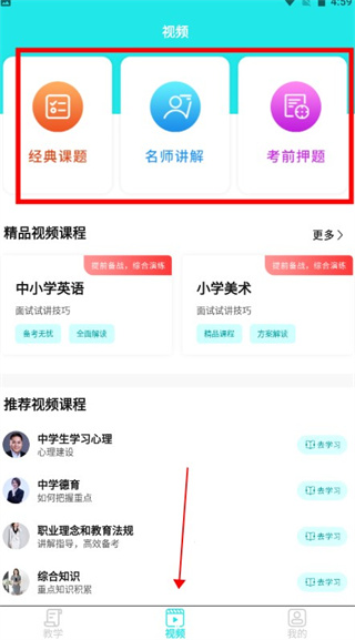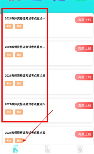 2、在首页的“教学”页面下,可以复习各类教师资格证考试考点重点;
