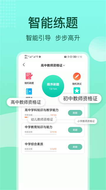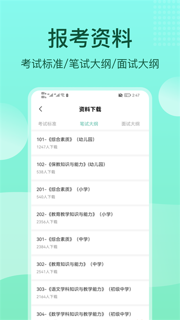 一起考教资app是专门针对教师招聘考试以及教师资格证考试打造的一款教育学习软件,名师直播在线教导,从简单的开始学,零基础学习教资笔试,还有有免费的进门视频,就算以前从来没有了解过教资也可以听得明白。并且该软件通过层层筛选的将近上万道题目,经过分类对比以十大核心的形式出现,帮助用户轻松简单的了解记住知识点。另外,一起考教资app根据目标考试的考点、难度,智能出题,通过记录用户练习情况,生成数据评估报告,预测考分;多种题型、详细解析、错题专项练习等特色功能快速的总结错误,节省复习时间,提高学习效率,助您顺利拿到教师资格证!