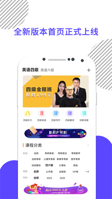 1、打开软件可以看到有四级听力、四级阅读等内容