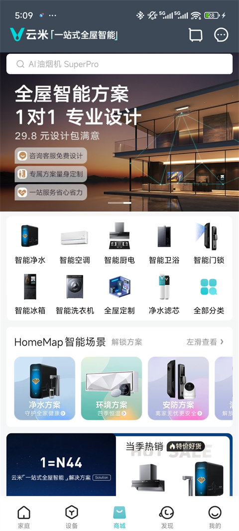 「全屋智能套购」多种家电装修搭配方案供你选择,支持根据个人需求,自主DIY设计家电搭配方案,咨询专属客服获取免费定制服务,享受活动价格。