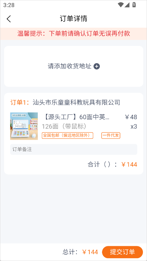 5、最后填写收货信息并完成结算,即可轻松实现一件代发。