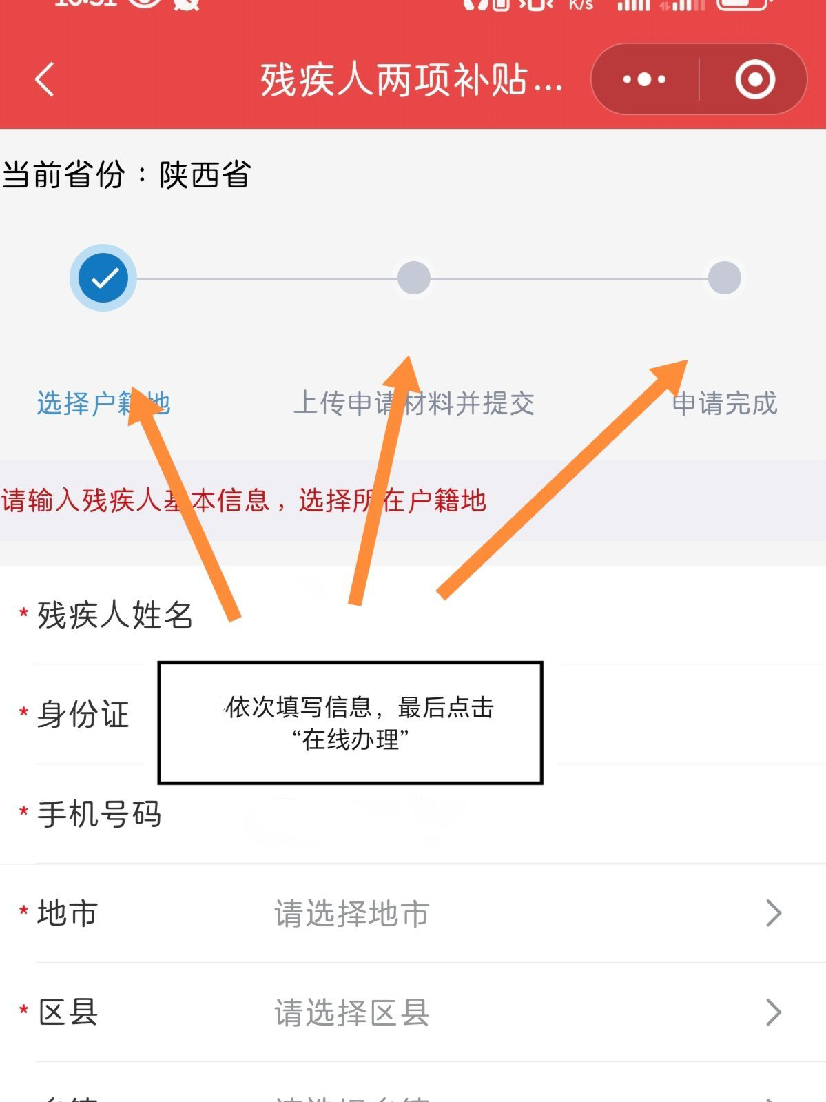 5、然后再填写一些详细的信息,填完之后点击“在线办理”即可。
