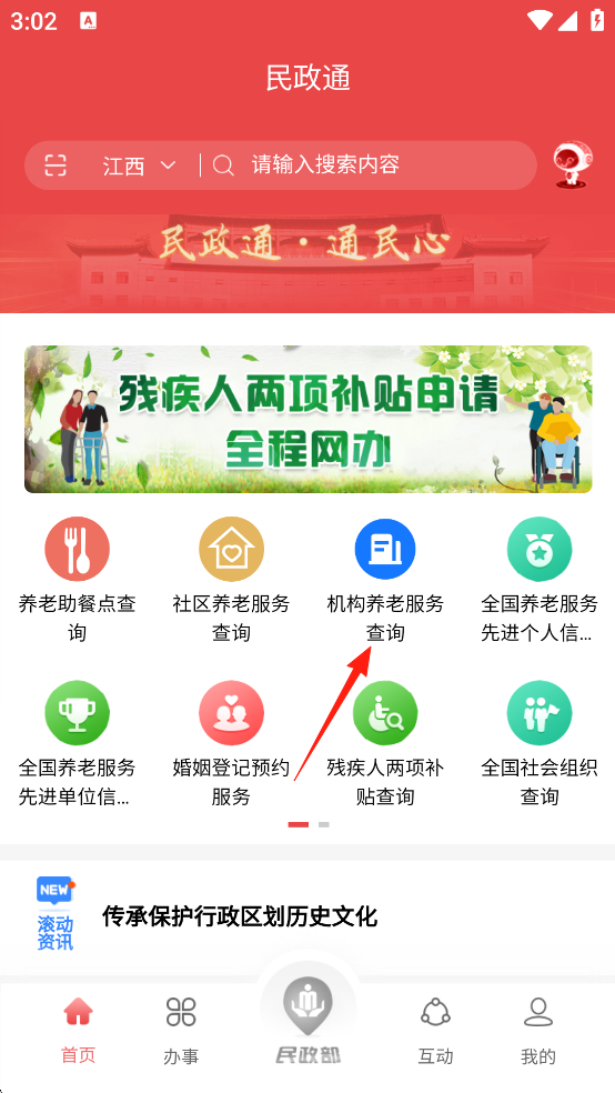 民政通App如何查询身边的养老服务机构