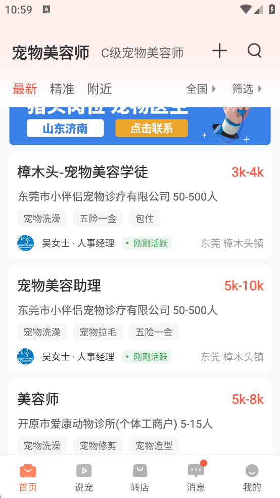 上传企业视频,吸引更多求职者青睐!宠物店和宠物医疗企业可查看求职者实地操作过程,更了解求职者的实力!