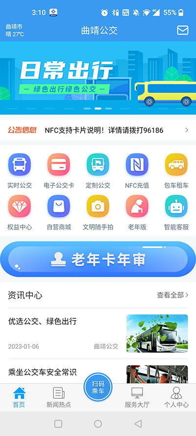 1、想要使用曲靖公交app乘车首先我们得打开“电子公交卡”功能。