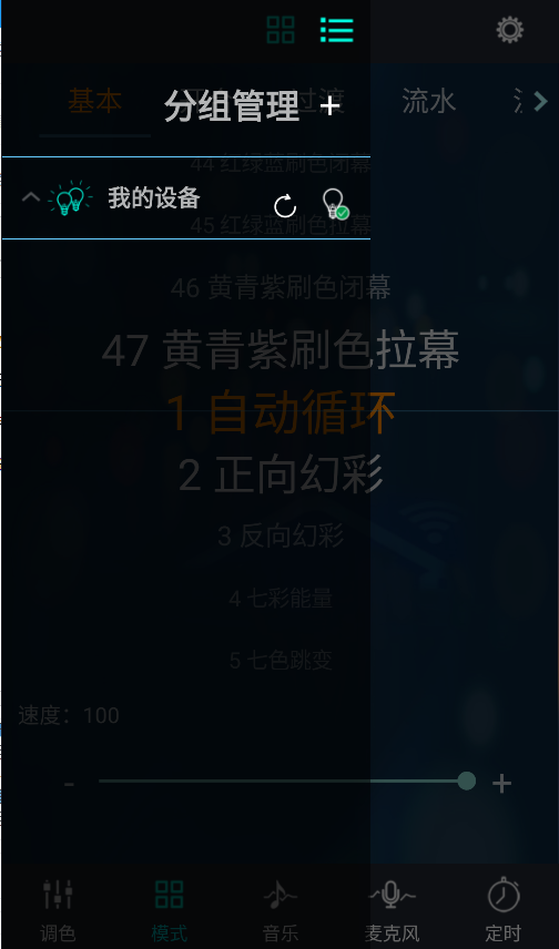 2、多种内置的颜色变幻模式,脱离手机自动控制。
