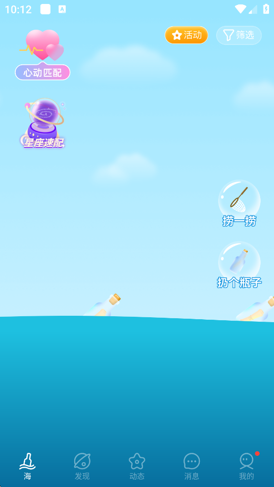 v9.18.0遇见漂流瓶app是一款万千小哥哥小姐姐免费在线嗨聊的交友平台,多元社交玩法帮你发现有趣的圈子。在繁忙的城市里,每天都有无数的人在擦肩而过,却没有方法彼此相识,遇见漂流瓶将会带给你机会,您将通过漂流瓶这一特殊方式,找到有缘的朋友,与谁聊天全靠缘分,最大限度的拓展你的朋友圈。遇见漂流瓶app还会为你提供24小时系统级别的守护,让您惬意休闲,安全社交。