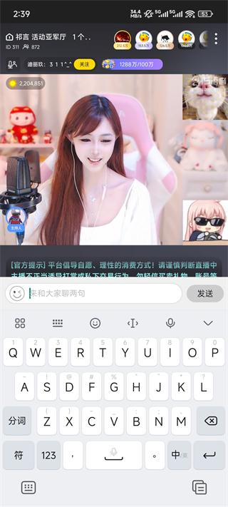 2、点击你喜欢的进入直播间,你可以打字和他交流