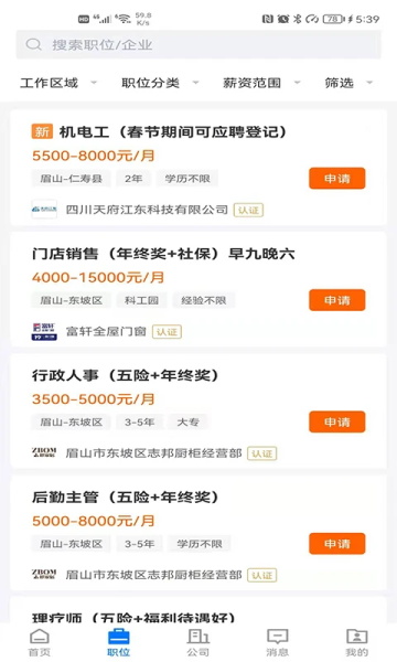 5、附近职位:搜索结果页可查看附近职位,找到离你最近的好工作