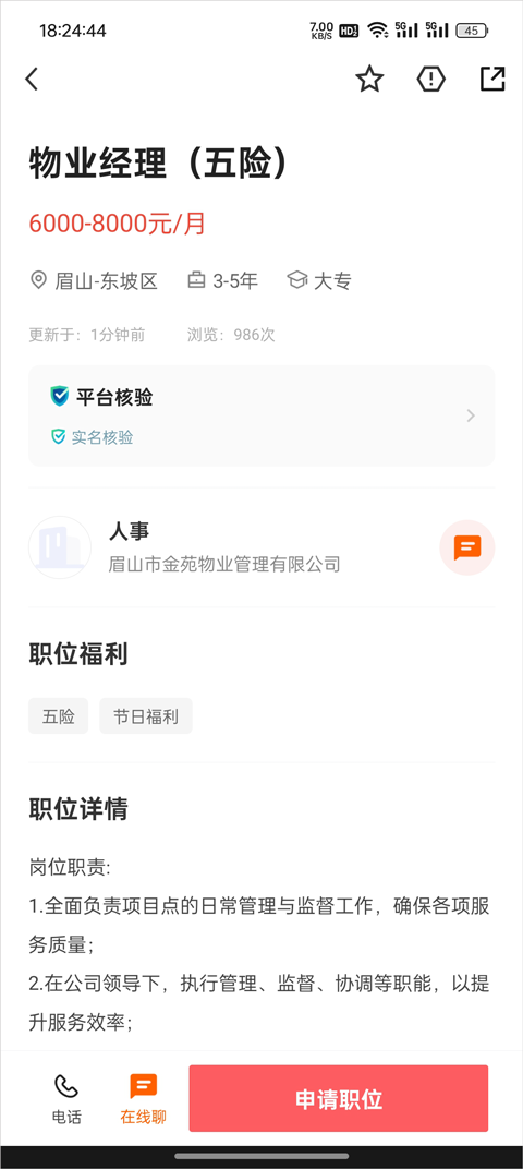 3、还可以进入查看,遇到合适的喜欢的可以点击申请职位;