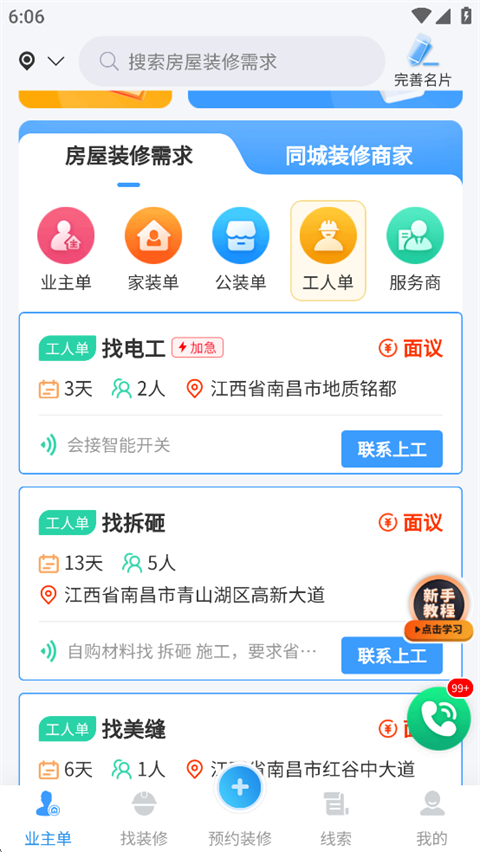 装修随时找工人、接活接单,工价透明、所见无虚,一键接单/找工人!