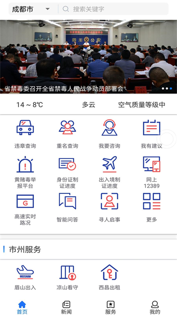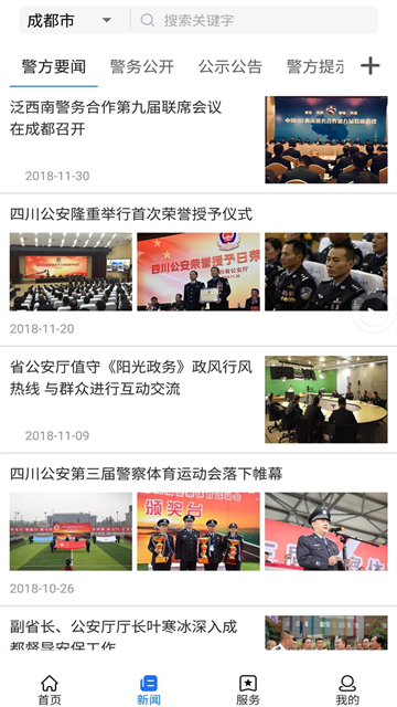 v3.0.2四川公安是四川省公安厅打造的一款公安部门为群众提供便民服务的手机端应用,通过将公安与群众之间搭建出一座崭新的沟通桥梁,从而实现更加亲民便民的服务效果。软件针对四川省8100余万海量手机用户,四川公安精心打造,重磅推出四川公安APP,从“有线”到“无线”,让群众享受“指尖警务”所带来的便捷。使用app让您在第一时间掌握四川新闻,了解政务动态,贴心的为民服务,给您提供最大的帮助,还可以在上面说出您想说的心声。另外软件还是网上办事的终端延伸、市民可以随时随地办公、三大新闻形态的整合、移动警情的自动化管理,建立更加适应群众需求的新媒体阵地。需要的朋友欢迎下载!